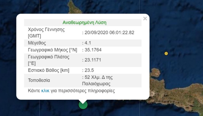 Δύο σεισμοί κλίμακας 4,1 και 4,3 Ρίχτερ ταρακούνησαν την Κρήτη το πρωί της Κυριακής 20/9 σε διάστημα μισής ώρας.