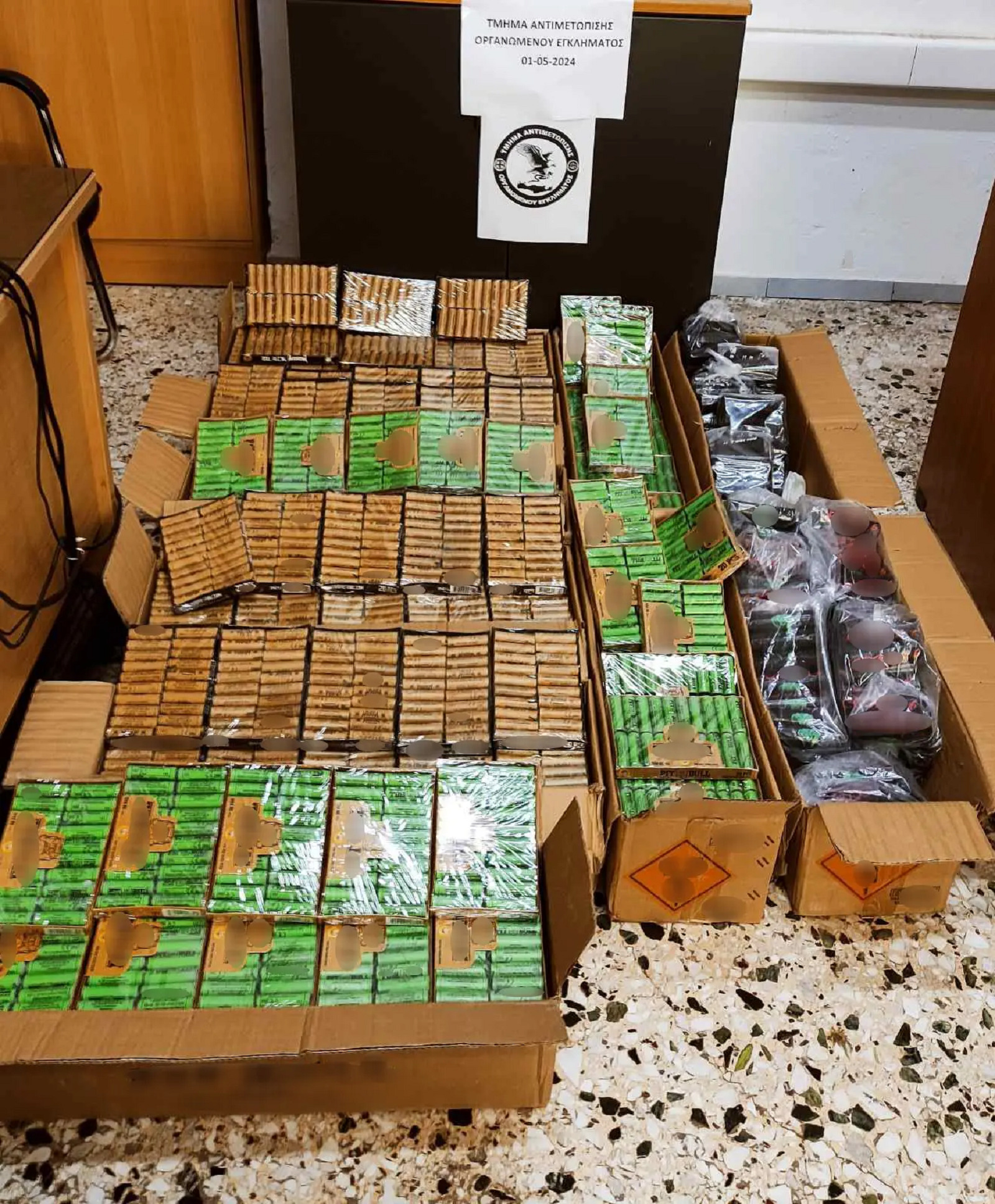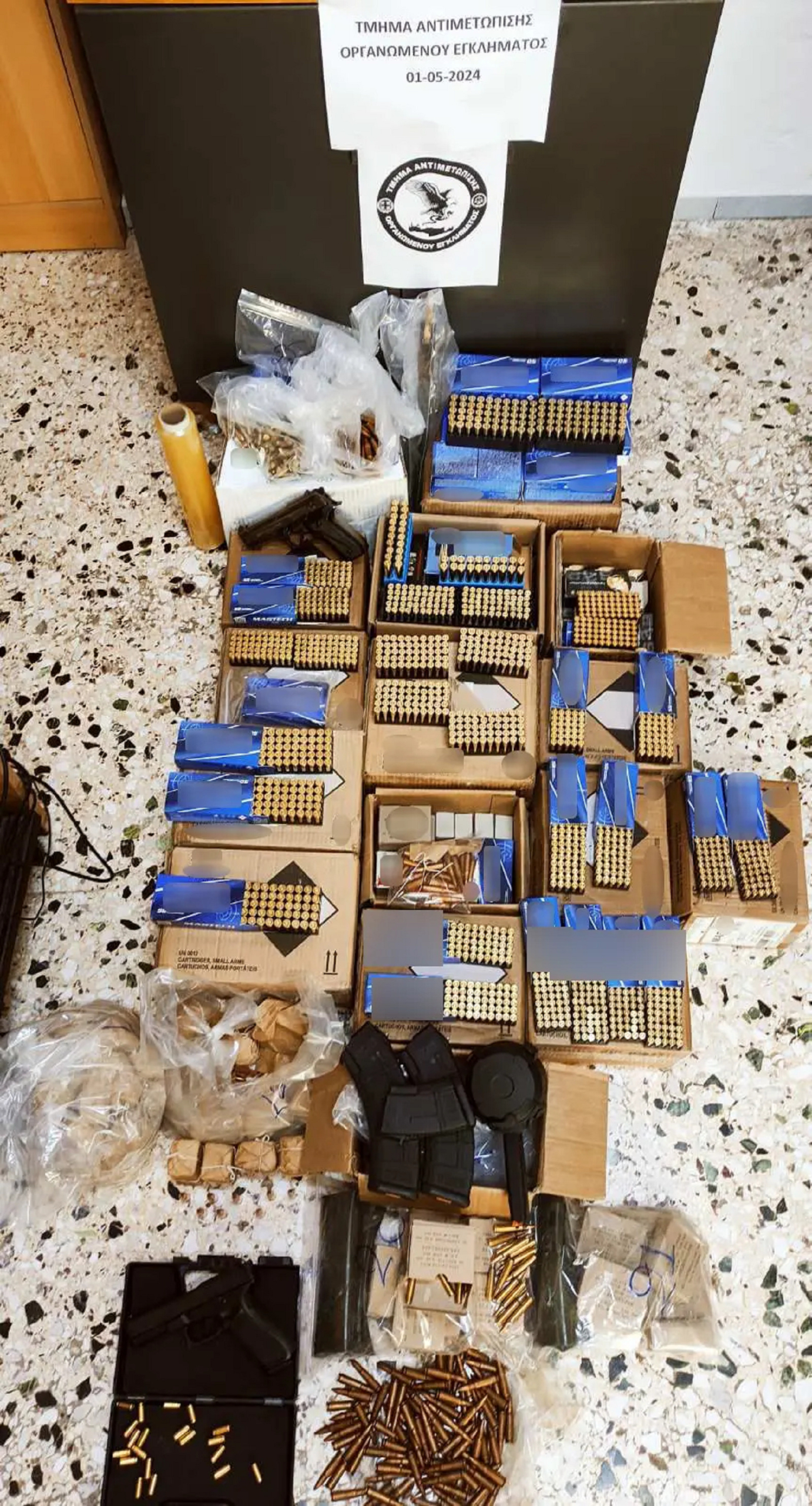 Κατά τη διάρκεια της επιχείρησης που περιελάβανε έρευνες σε οικίες, αποθηκευτικούς χώρους και σε εμπορικό κατάστημα των συλληφθέντων, βρέθηκαν και κατασχέθηκαν συνολικά 12.872 φυσίγγια όπλων διαφόρων διαμετρημάτων, 8.523 κροτίδες, 18 συστοιχίες πυροτεχνημάτων, δύο όπλα κρότου, ένα πιστόλι τύπου replica, τέσσερις γεμιστήρες πολεμικών τυφεκίων και πιστολιού, μεταλλικά εξαρτήματα πολεμικών τυφεκίων, δύο μαχαίρια και τρεις συσκευές κινητών τηλεφώνων.