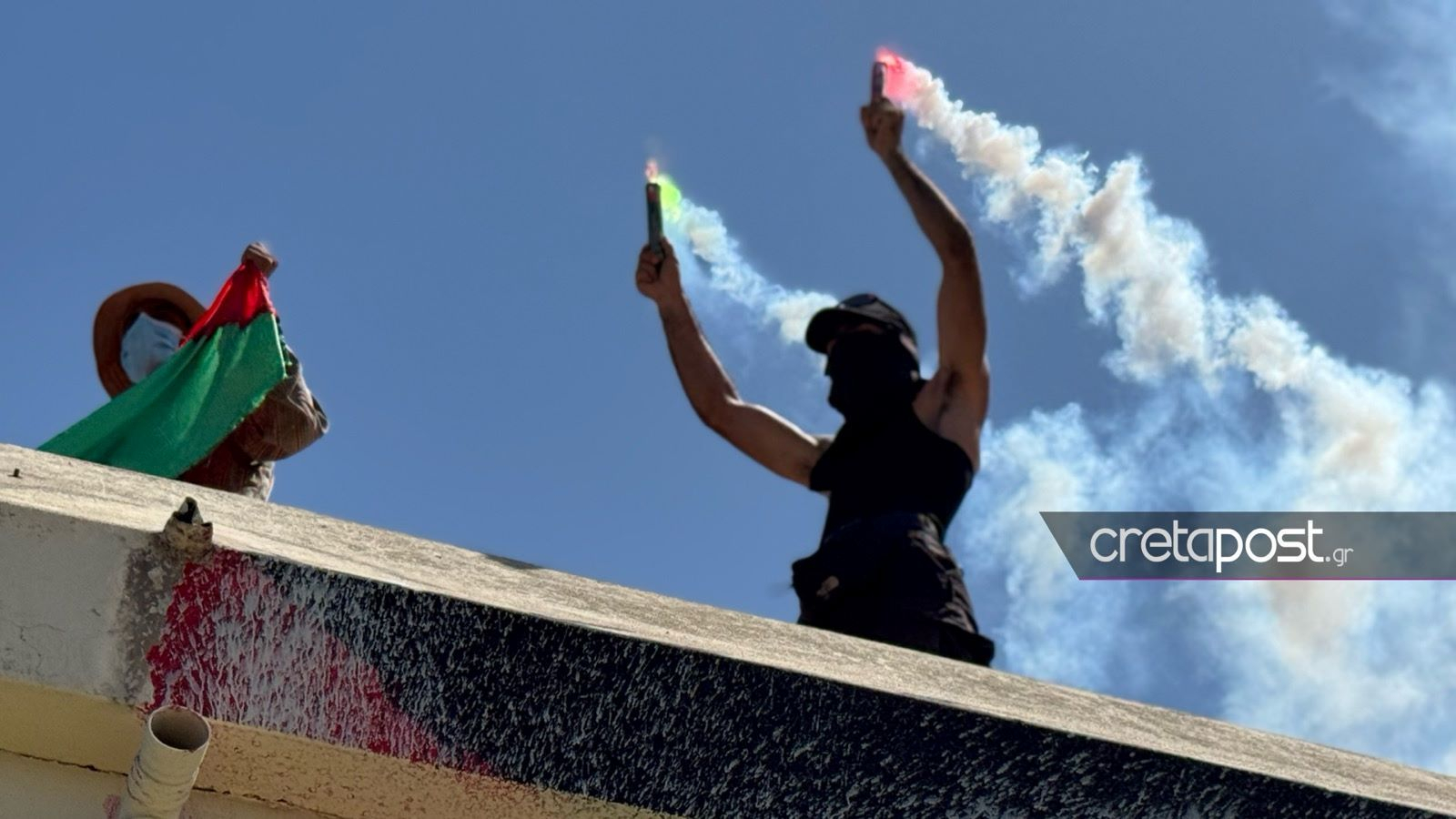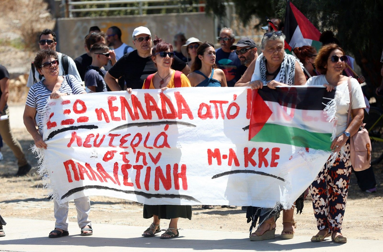 Κρήτη: Με πανό και συνθήματα υπέρ της Παλαιστίνης υποδέχτηκαν το ισραηλινό κρουαζιερόπλοιο