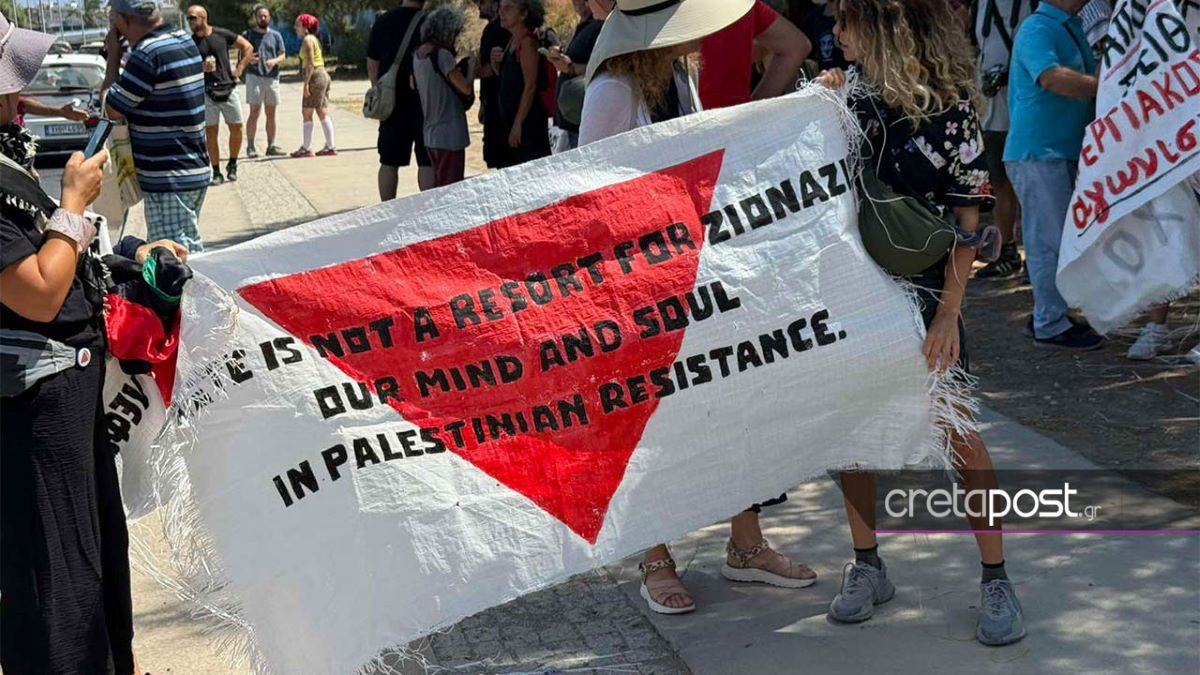 Με πανό, σημαίες της Παλαιστίνης και συνθήματα υποδέχθηκαν κάτοικοι της Κρήτης το ισραηλινό κρουαζιερόπλοιο Crown Iris, το οποίο έδεσε λίγο μετά τη 1 στο λιμάνι του Ηρακλείου.