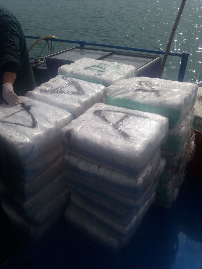 Κατά μήκος του καταστρώματος και σε ειδικές κρύπτες έχουν εντοπισθεί μέχρι αυτή την ώρα σχεδόν δύο τόνοι κατεργασμένης κάνναβης, συσκευασμένοι σε πακέτα με τη μορφή πάστας «σοκολάτας». Οι έρευνες εντός του πλοίου συνεχίζονται και κάθε πακέτο που εντοπίζεται αφού ανιχνευτεί το περιεχόμενό του ζυγίζεται ώστε να υπάρξει πλήρης καταγραφή του παράνομου φορτίου των ναρκωτικών.