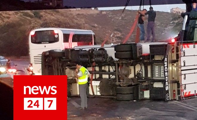 Κρήτη: Νταλίκα αναποδογύρισε στην Εθνική Οδό μετά από σύγκρουση με ΙΧ
