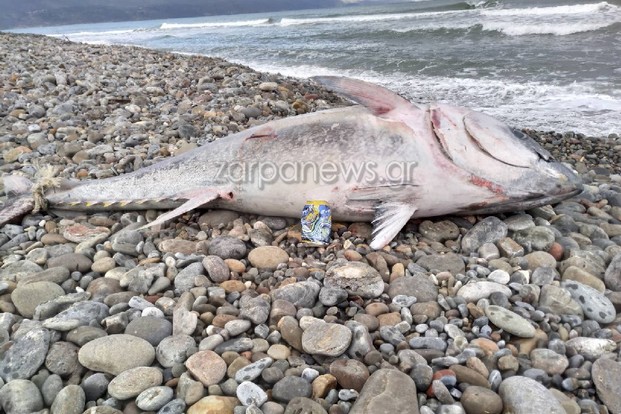 Ένα τόνο 80 κιλών περίπου ξέβρασε η θάλασσα στην παραλία του Ταυρωνίτη στη Δυτική Κρήτη το πρωί της Παρασκευής.
