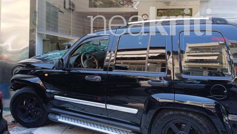 Ασυνήθιστο τροχαίο σημειώθηκε το μεσημέρι του Σαββάτου (21/05) στις 14:00 το μεσημέρι στο κέντρο του Ηρακλείου, όταν τζιπ ξέφυγε της πορείας του και έπεσε στην είσοδο κρεοπωλείου.