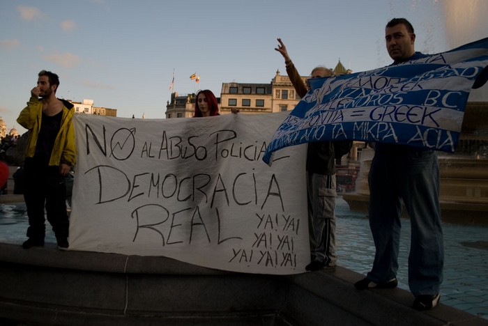 Η ειρηνική διαμαρτυρία που άρχισε στην Ισπανία, συνεχίζεται με αμείωτη ένταση και στην Ελλάδα.