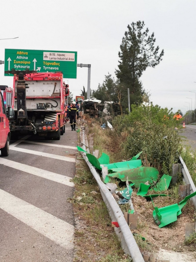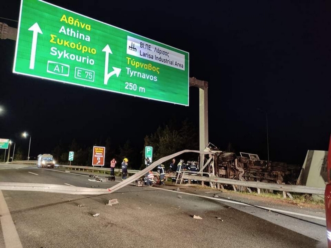 Το δυστύχημα σημειώθηκε λίγο πριν απο τις 6 το πρωί της Τρίτης, υπο άγνωστες έως στιγμής συνθήκες, ενω το μεγάλο φορτηγό κινούταν στο ρεύμα προς Αθήνα – στο ύψος του κόμβου Γυρτώνης, όπως αναφέρει το Larissanet.gr.