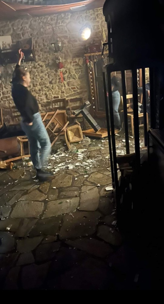 Φωτοβολίδες, όργανα, σπασμένα πιάτα και τραπέζια άφησαν πίσω τους οι εορτασμοί του κλεισίματος μεζεδοπωλείου στη Λάρισα, μετά από 20 χρόνια.