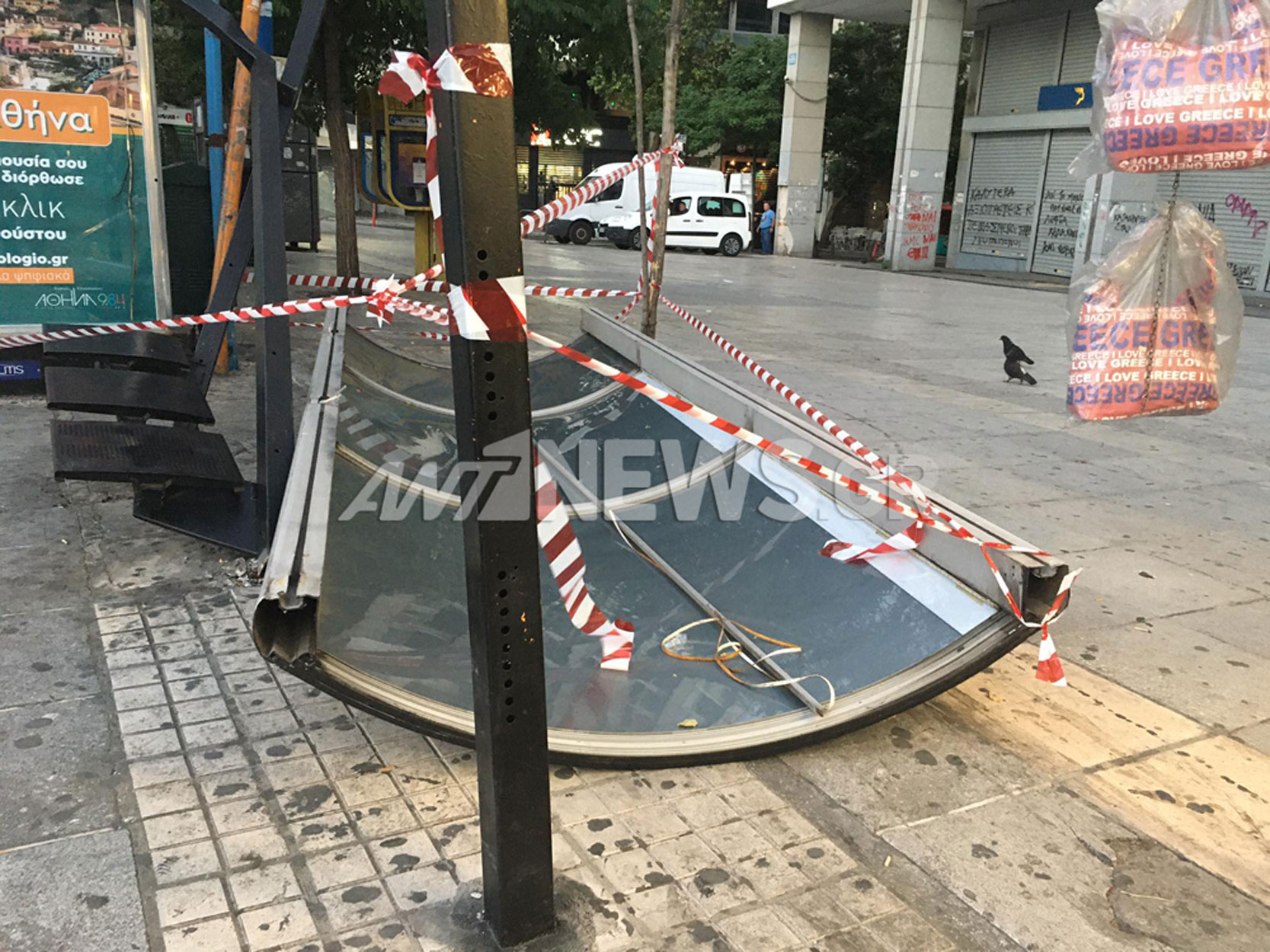 Από την πρόσκρουση του λεωφορείου καταστράφηκε το στέγαστρο στη στάση.