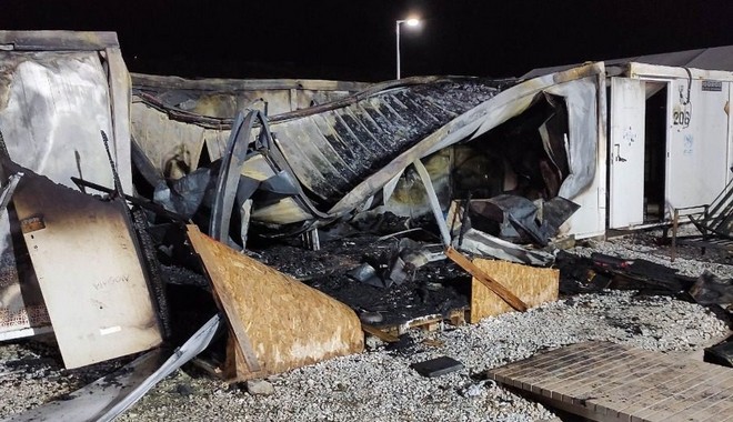 Τέσσερα κοντέινερ, στα οποία διέμεναν πρόσφυγες αιτούντες άσυλο, κάηκαν ολοσχερώς και ενώ σε άλλα τρία προκλήθηκαν ζημιές.
