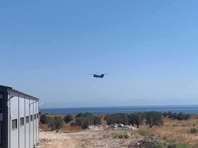 Από το πρωί της Παρασκευής στο σημείο, σινούκ και ελικόπτερα της Πυροσβεστικής ξεφόρτωσαν σκηνές στο πεδίο βολής που βρίσκεται στον παραλιακό δρόμο μετά το Καρά Τεπέ στην Λέσβο, προκειμένου να μεταφερθούν, προσωρινά έστω, οι πρόσφυγες και μετανάστες που βρίσκονται τις τελευταίες μέρες στους δρόμους του νησιού μετά την καταστροφική φωτιά στη Μόρια όπους κάηκε το ΚΥΤ.