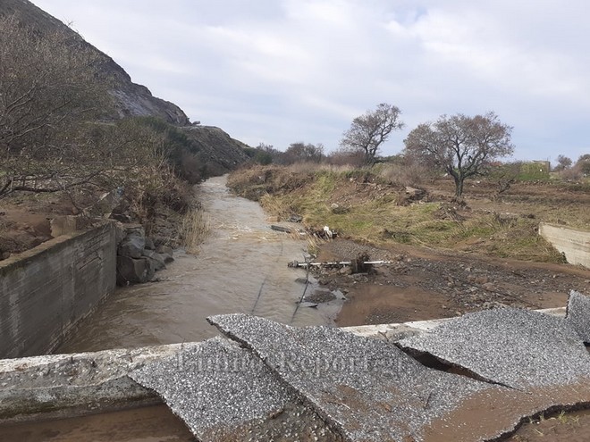 Μάλιστα, χείμαρρος πέρασε στην κυριολεξία μέσα από το σπίτι στον Κάσπακα αφήνοντας παντού λάσπες και το νερό έφτασε τους 80 πόντους, ενώ η κακοκαιρία δημιούργησε ζημιά στο δίκτυο ύδρευσης.