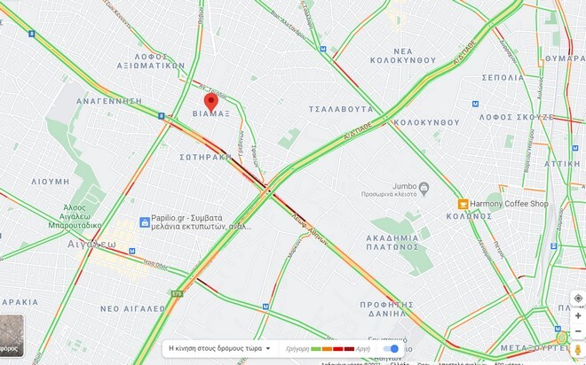 Ταυτόχρονα στο “κόκκινο” βρίσκεται και η Λεωφόρος Βασιλέως Κωνσταντίνου στο ύψος της Φιλοθέης μέχρι και τους Αμπελόκηπους.