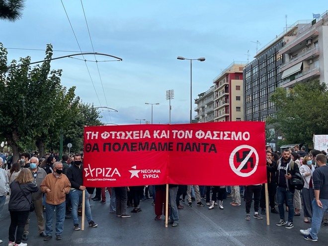 Με πανό και συνθήματα οι συγκεντρωμένοι κατέκλυσαν τον χώρο στην Αλεξάνδρας φωνάζοντας αντιφασιστικά συνθήματα ενώ παρούσα ήταν και η μητέρα του δολοφονημένου Παύλου Φύσσα.