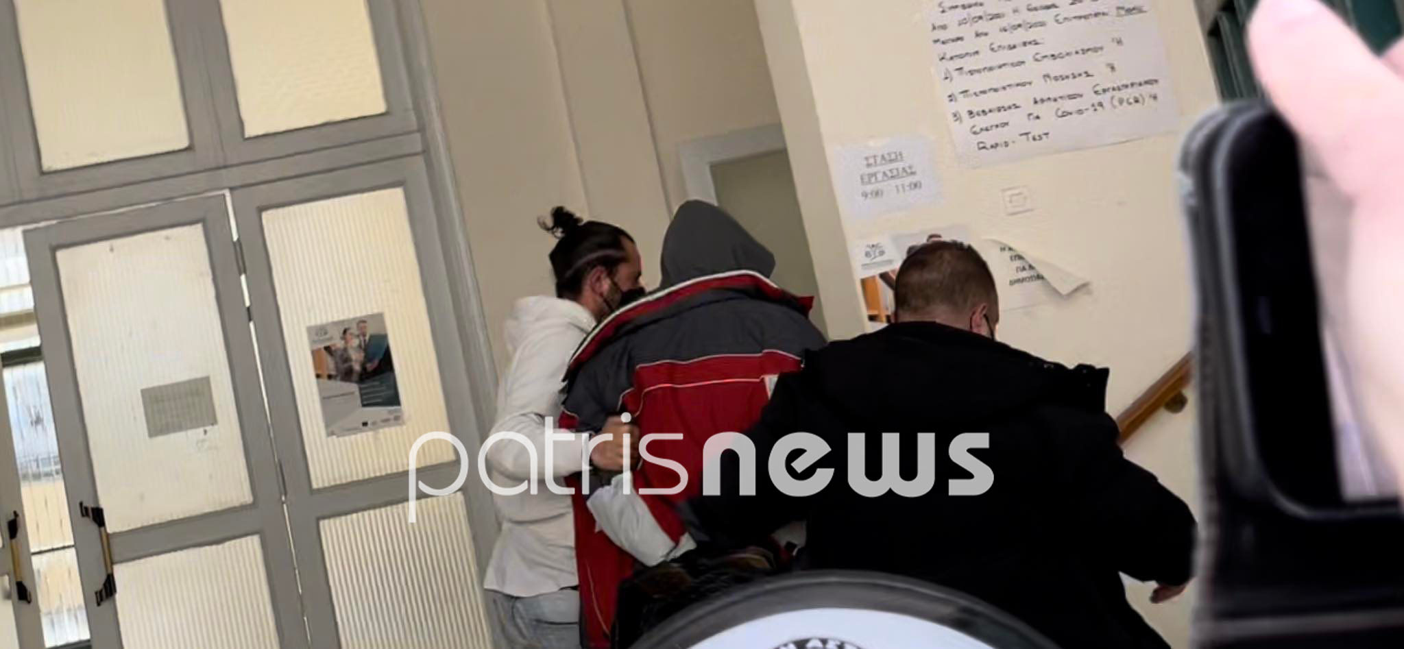 Ο 60χρονος κατέφθασε, λίγο πριν τις 3μ.μ. στα Δικαστήρια Αμαλιάδας, φορώντας κουκούλα και μάσκα.