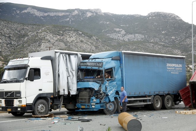 Νταλίκα, που κινούνταν προς Κόρινθο, δίπλωσε, για άγνωστο μέχρι στιγμής λόγο, με αποτέλεσμα να πέσουν πάνω της δύο άλλα φορτηγά που ακολουθούσαν. Από τη σύγκρουση, η διπλωμένη νταλίκα πέρασε στο αντίθετο ρεύμα και εμβόλισε αυτοκίνητο.