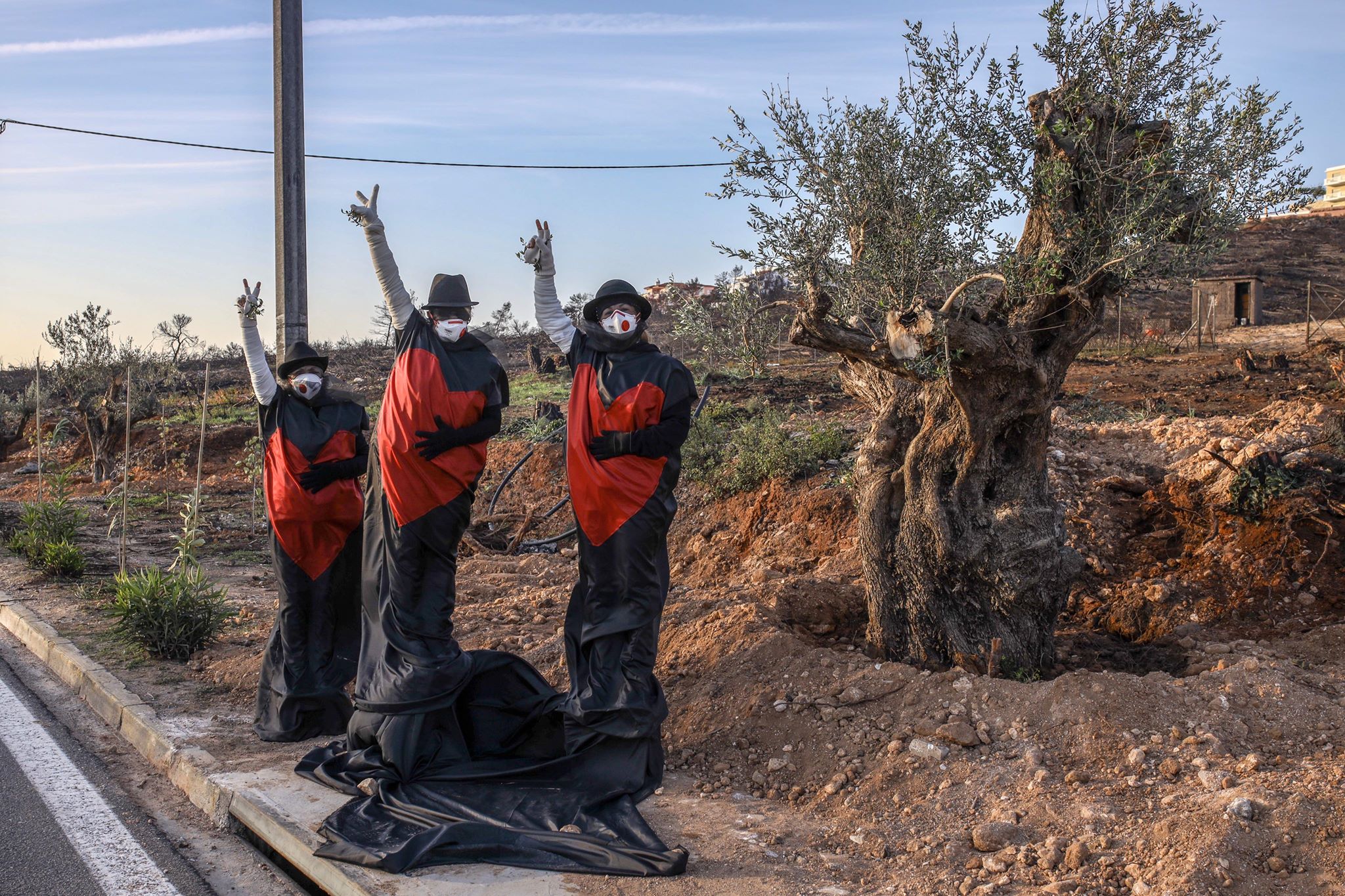 Άλλοι είχαν ντυθεί στα μαύρα φορώντας μάσκες και φέροντας μία μεγάλη κόκκινη καρδιά, ενώ κάποιοι έθεσαν και πάλι το αίτημα της πλήρους αποζημίωσης των πυρόπληκτων.