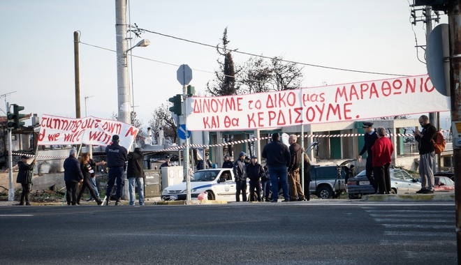 “Δίνουμε τον δικό μας μαραθώνιο και θα κερδίσουμε”, έγραφε ένα από τα πολλά πανό που σήκωσαν οι κάτοικοι των πληγεισών περιοχών, που θέλοντας να επουλώσουν τα τραύματα που άφησαν πίσω τους οι καταστροφικές φωτιές, συγκεντρώθηκαν σε διάφορα σημεία της διαδρομής, του Μαραθωνίου που διανύουν αθλητές απ’ όλο τον κόσμο, υπενθυμίζοντας την τεράστια καταστροφή που άφησε πίσω της η φονική πυρκαγιά.