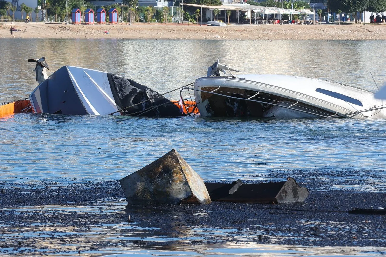 Τα ξημερώματα της Πέμπτης, τα τέσσερα σκάφη που βρίσκονταν στην Ακτή Θεμιστοκλέους τυλίχθηκαν στις φλόγες και κάηκαν ολοσχερώς, προτού βυθιστούν στη θάλασσα, με τον κίνδυνο της διαρροής καυσίμων να είναι υπαρκτός.