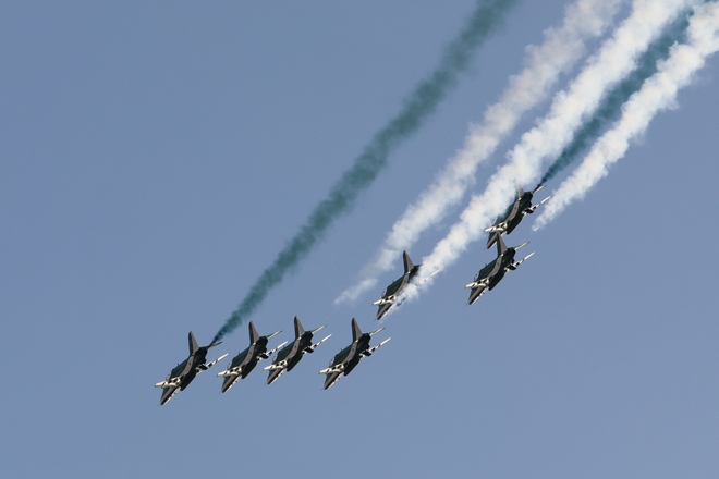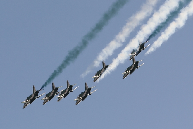 Σμήνος μαχητικών αεροσκαφών πραγματοποίησε πτήσεις πάνω από την Αθήνα το απόγευμα της Τετάρτης.