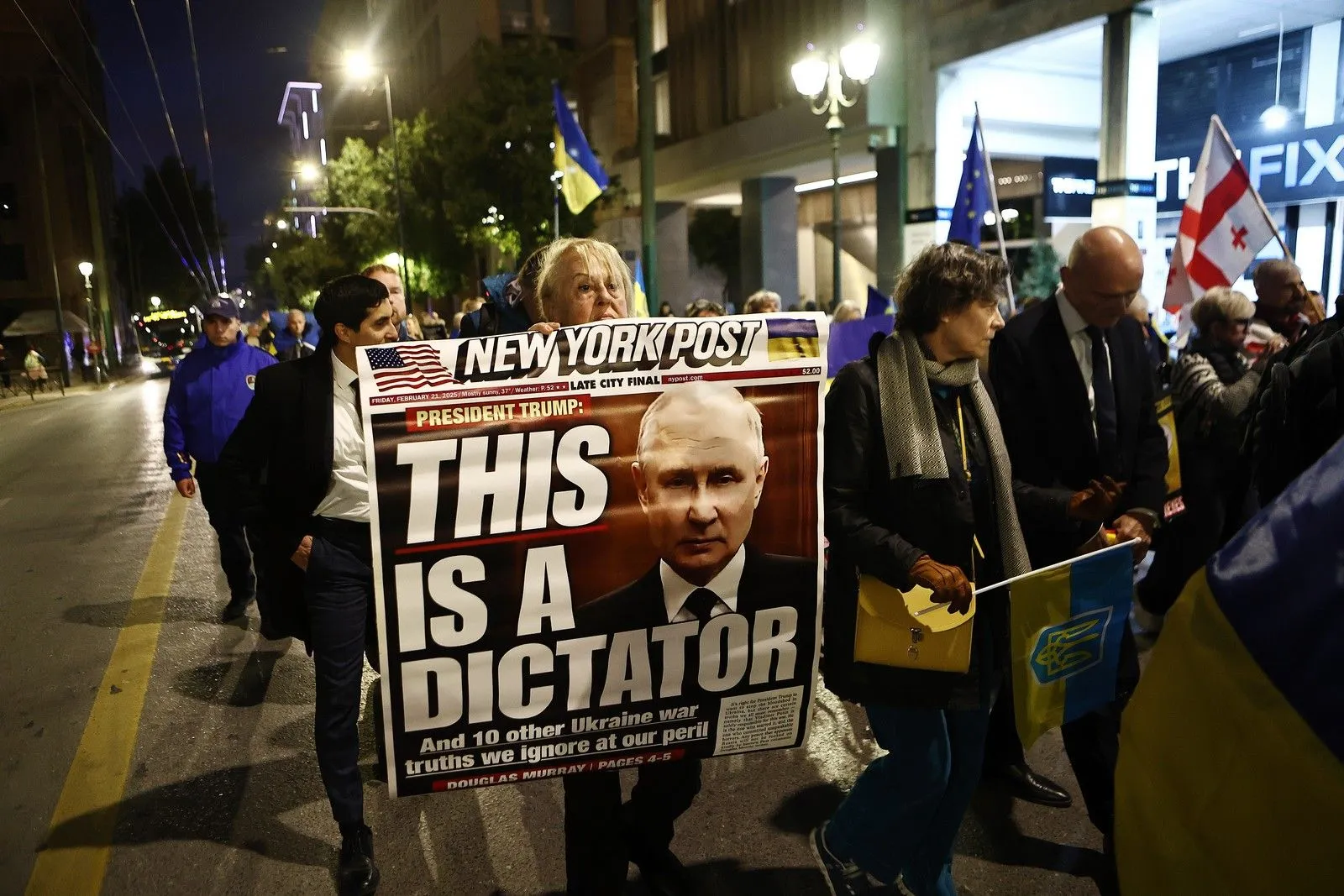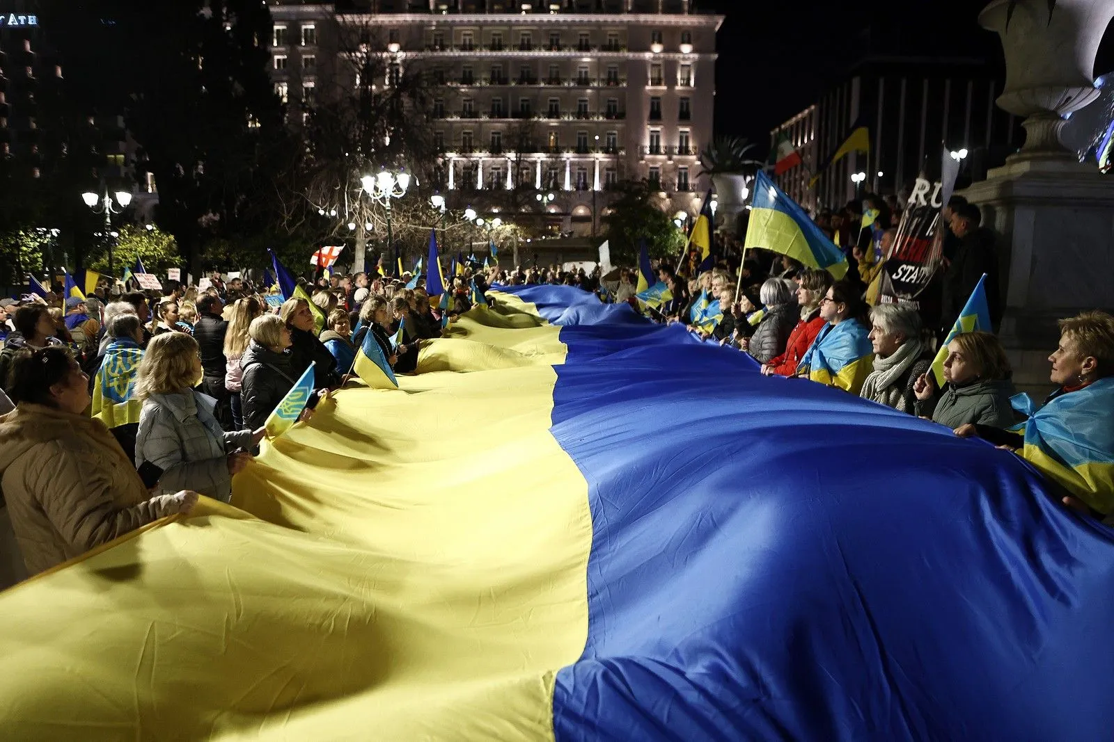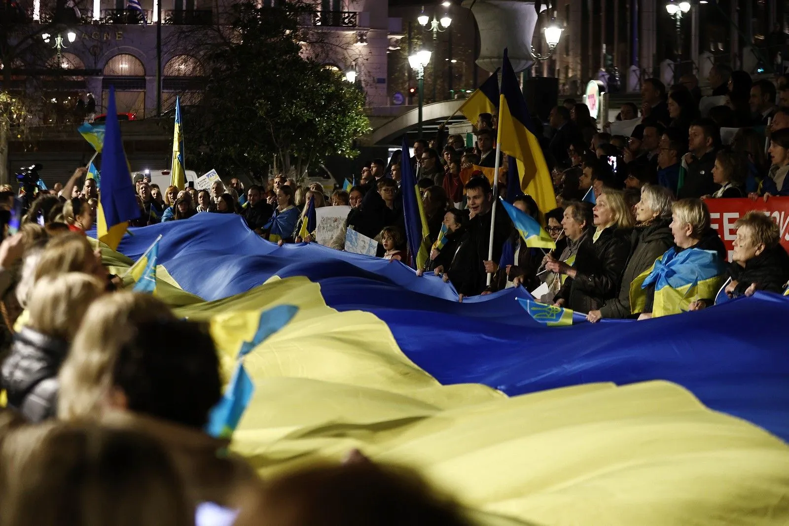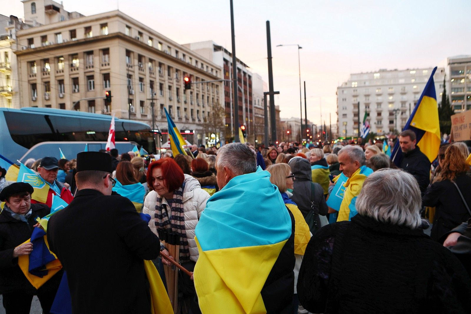 Με σημαίες και δάκρυα: Πορεία στο Σύνταγμα για τα τέσσερα χρόνια του πολέμου στην Ουκρανία