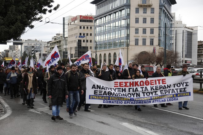 Νωρίτερα, οι εργαζόμενοι είχαν πραγματοποιήσει συγκέντρωση έξω από το ξενοδοχείο, στη Λεωφόρο Συγγρού και στη συνέχεια πορεία στο υπουργείο Εργασίας, στην οδό Σταδίου.