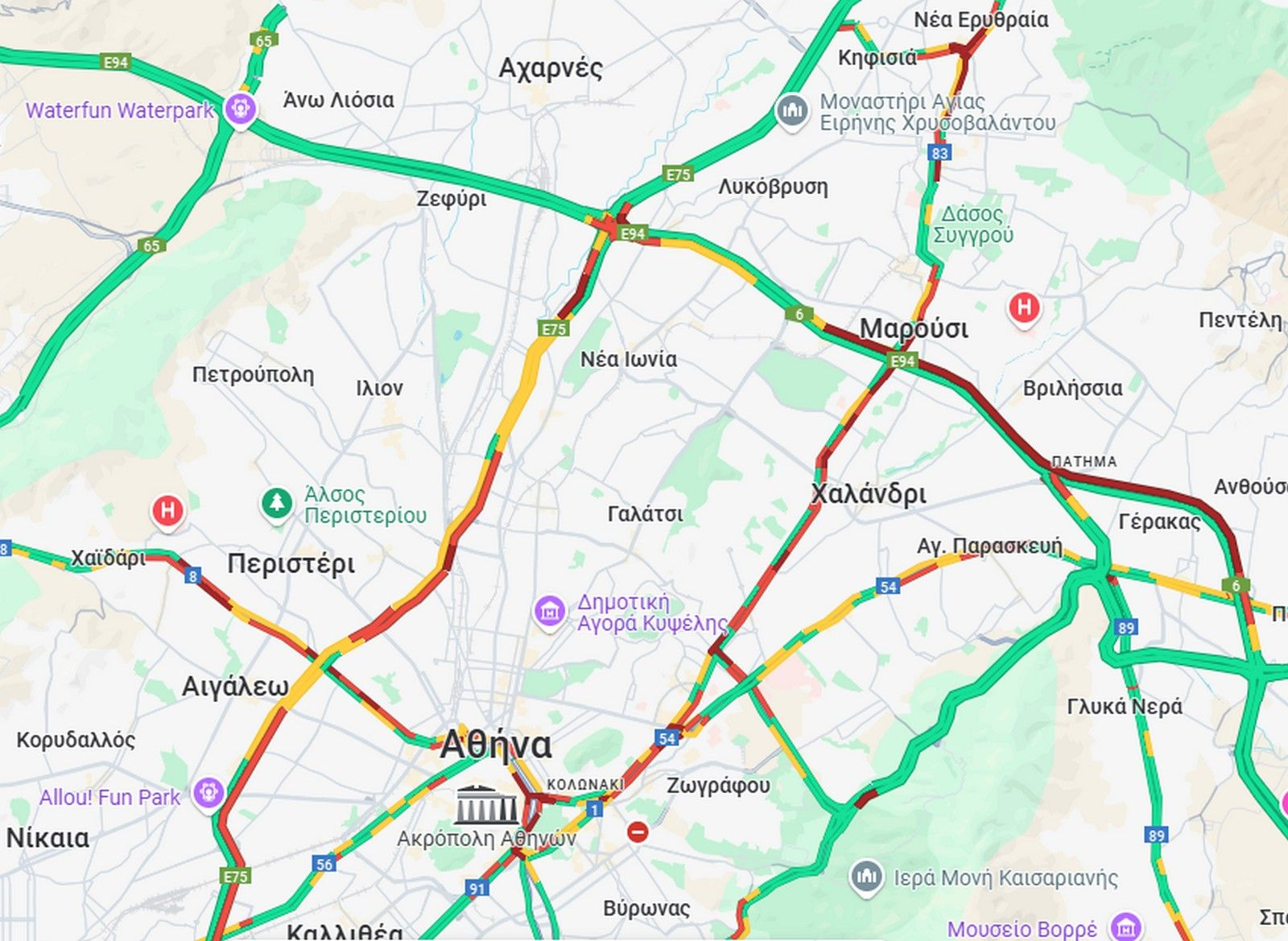 Την ίδια στιγμή, μεγάλες καθυστερήσεις καταγράφονται και σε άλλες κεντρικές οδούς, όπως στη Λεωφόρο Κηφισίας, καθώς και στην περιοχή του Κηφισού.