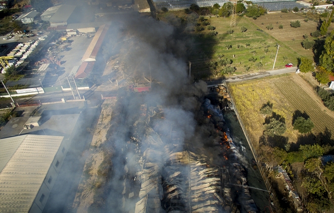 Εξαιτίας των ιδιαίτερα εύφλεκτων υλικών, η πυρκαγιά επεκτάθηκε γρήγορα και το υψηλό θερμικό φορτίο που έχει δημιουργηθεί δυσχεραίνει το έργο κατάσβεσης των πυροσβεστών. Σύμφωνα με πληροφορίες έχει τραυματιστεί ένας εργαζόμενος.