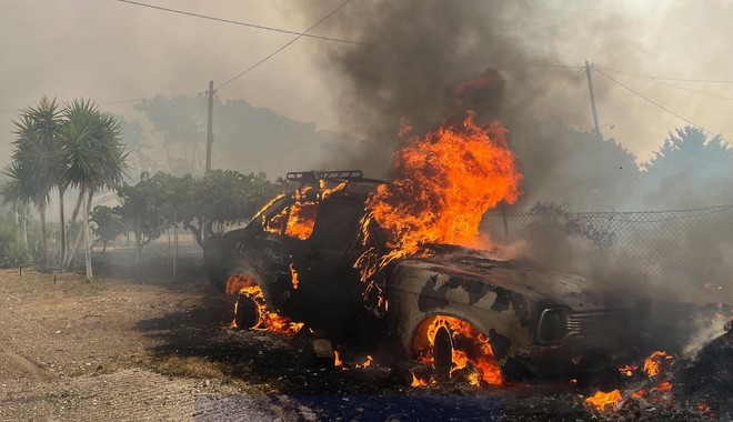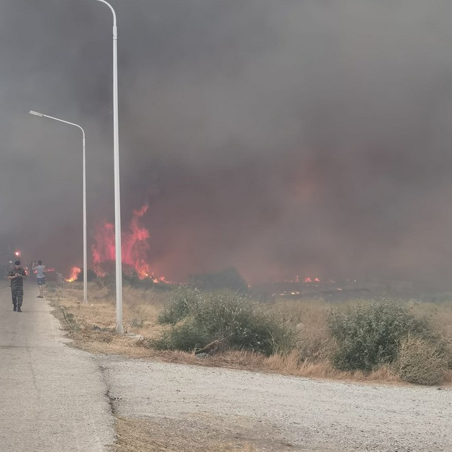Το μέτωπο της φωτιάς έφτασε στα όρια του οικισμού και έτσι, με μήνυμα στα κινητά τηλέφωνα ζητήθηκε από τους κατοίκους να κινηθούν προς τον Πολιχνίτο.