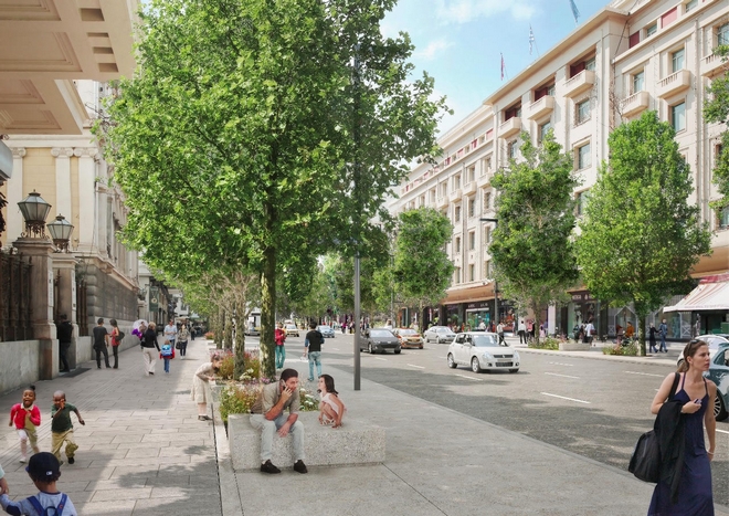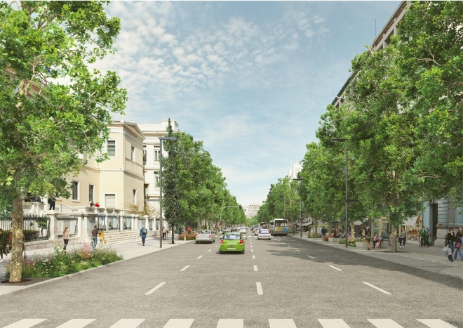 Τα παρτέρια πάντως δεν προβλέπεται να φύγουν. Οι νέες παρεμβάσεις περιλαμβάνουν μεταξύ άλλων τη διαπλάτυνση των υφιστάμενων πεζοδρομίων, τα οποία θα αποδώσουν στους πεζούς, 4.270 τ.μ. ενώ 2.260 τ.μ θα είναι οι χώροι πρασίνου (με μεγάλα παρτέρια με θάμνους και εποχικά φυτά) σε συνδυασμό με τους 87 νέους μεγάλους πλατάνους που θα φυτευτούν κατά μήκος του δρόμου και από τις δύο πλευρές.