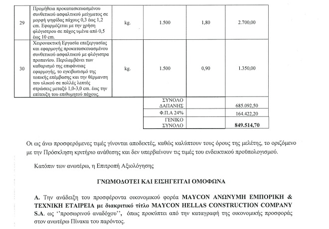 Το άθροισμα των δύο συμβάσεων για τα έργα που έχουν γίνει μέχρι σήμερα για τον Μεγάλο Περίπατο, ανέρχεται σε κονδύλια 1.870.074,4 ευρώ.
