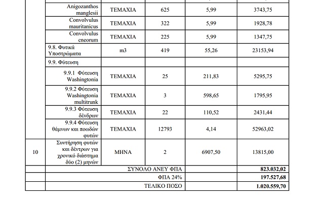 Στη δεύτερη σύμβαση, το κόστος ανήλθε στο 1.020.559,70 ευρώ και ανάδοχος ήταν η εταιρεία “Urban Innovation Μονοπρόσωπη ΙΚΕ”.Τα χρήματα δόθηκαν για ζαρντινιέρες -με τιμές που κυμαίνονταν από 4.605 ευρώ έκαστη, ως 506.55 ευρώ έκαστη- παγκάκια με ζαρντινιέρες στο Σύνταγμα που κοστίζουν 5.249,70 ευρώ το καθένα, παγκάκια με φωτισμό που κοστίζουν 911,79 ευρώ, φοινικοειδή φυτά (Ουασινγκτόνιες) με κόστος 1.565,70 το καθένα, άλλα φυτά, φυτικά υποστρώματα καθώς και εργασίες συντήρησής τους για δύο μήνες.