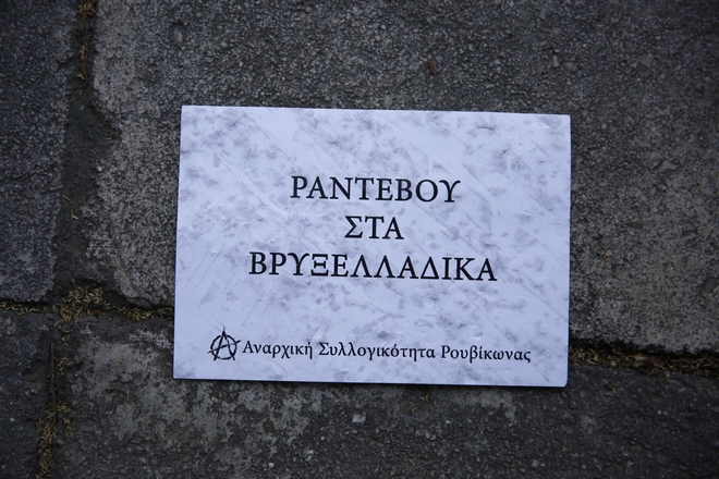 Ειδικότερα, σύμφωνα με τα όσα έγιναν γνωστά, 14 νεαροί κατέβηκαν την Ηρώδου Αττικού και ξαφνικά έτρεξαν προς το Μέγαρο Μαξίμου. Τρεις εξ αυτών προσπάθησαν να εισβάλλουν στον προαύλιο χώρο, αλλά εμποδίστηκαν από τους αστυνομικούς. Άλλα μέλη της αντιεξουσιαστικής ομάδας πέταξαν στο σημείο φέιγ βολάν. «Ραντεβού στα Βρυξελλάδικα» και «Στις Βρυξέλλες είναι ο εχθρός, τη λύση θα την δώσει ο ένοπλος λαός» έγραφαν τα φέιγ βολάν.