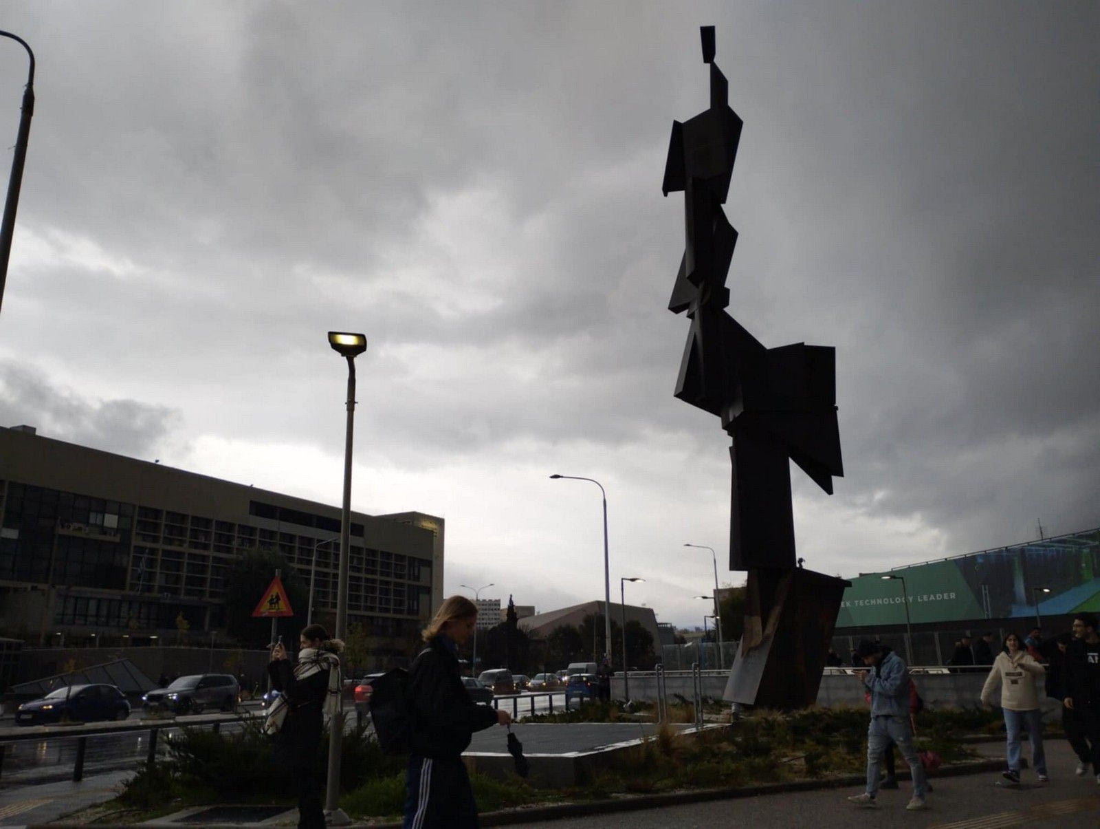 Ακολουθήσαμε την διαδρομή του μετρό ανάποδα και επίγεια αυτή τη φορά. Από την Βενιζέλου στην Αγία Σοφία. Φτάνοντας στον σταθμό στην κάτω πλευρά της Εγνατίας έβλεπε κανείς τις κυλιόμενες σκάλες δεξιά και αριστερά να κινούνται κανονικά υπό βροχή. Οι σκάλες στην μέση είχαν κλείσει εξαιτίας της ολισθηρότητας. Η είσοδος του σταθμού, για τους μη Θεσσαλονικείς, θυμίζει την είσοδο στον σταθμό Πανεπιστήμιο της Αθήνας, όπου οι σκάλες είναι εκτεθειμένες στα καιρικά φαινόμενα.
