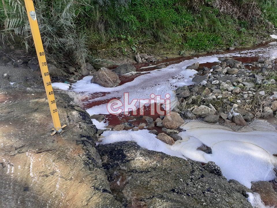 Κόκκινος βάφτηκε ο Γεροπόταμος, το ποτάμι της Μεσαράς που βρίσκεται στο ύψος των Μοιρών στην Κρήτη.