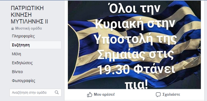 Στην μυστική διαδικτυακή ομάδα «Πατριωτική Κίνηση Μυτιλήνης ΙΙ» υπήρχε μια ανακοίνωση που ζητούσε από τον κόσμο να προσέλθει μαζικά στην υποστολή σημαίας στις 19:00 το απόγευμα της Κυριακής, με την υποσημείωση όμως «Φτάνει πια», δημιουργώντας εύλογα ερωτήματα για το τι μπορεί να σημαίνει η φράση αυτή. Στην ίδια ομάδα δε, σε άλλο κάλεσμα μέσω φωτογραφίας, όπως φαίνεται υπάρχει η σημείωση «Έτοιμοι για όλα».