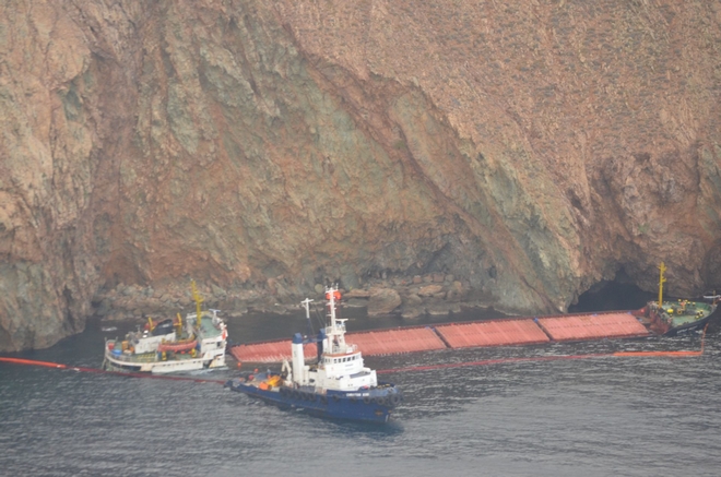 Στην πόντιση πλωτών φραγμάτων γύρω από το φορτηγό πλοίο “Little Seyma” σημαίας Παναμά, το οποίο προσάραξε στις 22 Δεκεμβρίου στη νήσο Τραγονήσι, νότιο-ανατολικά της Μυκόνου, προχώρησε αντιρρυπαντικό σκάφος του Λιμενικού και δύο ρυμουλκά.
