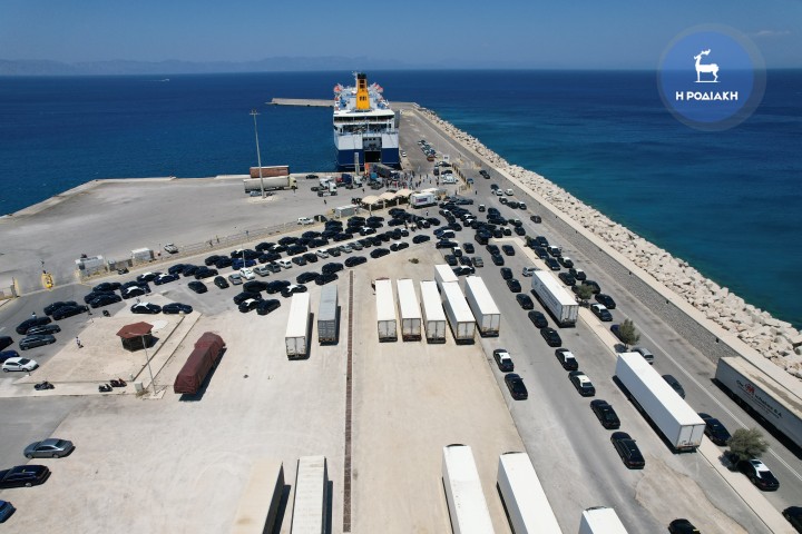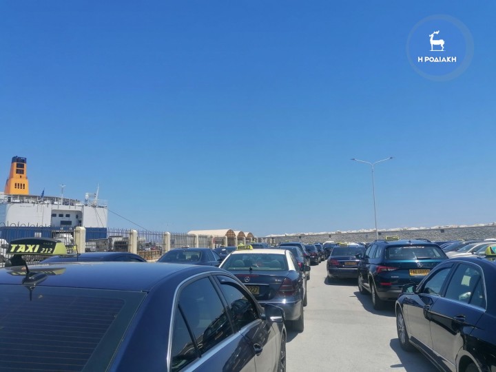 Οι οδηγοί ταξί εξακολουθούν να βρίσκονται στο λιμάνι της Ρόδου, ενώ αισθητή είναι και η παρουσία της αστυνομίας.