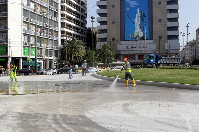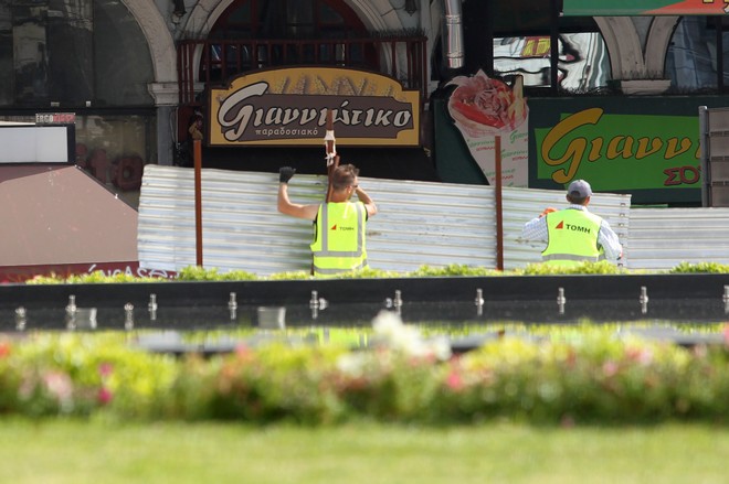 Ήδη από το πρωί, τα προστατευτικά έχουν απομακρυνθεί από το μεγαλύτερο μέρος της πλατείας και συνεργεία του δήμου προβαίνουν στον καθαρισμό της. Το βράδυ, σύμφωνα με πληροφορίες, θα λειτουργήσει -φωταγωγημένο- και το συντριβάνι.