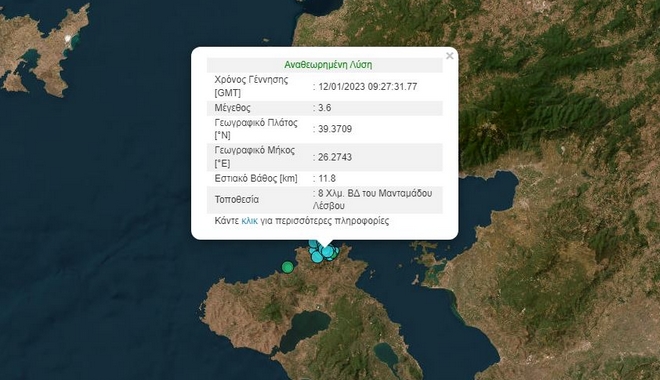 Νέος σεισμός μεγέθους 3,6 βαθμών της κλίμακας Ρίχτερ σημειώθηκε στις 11:27 το πρωί της Πέμπτης στο νησί της Λέσβου..