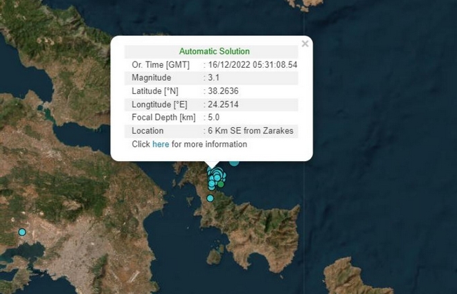 Σεισμός μεγέθους 3,1 βαθμών της κλίμακας Ρίχτερ σημειώθηκε στις 07:32 το πρωί της Παρασκευής στην Εύβοια.
