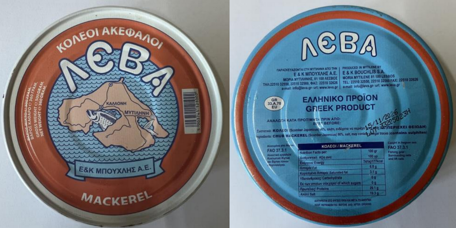 Πρόκειται για προϊόν με ημερομηνία ελάχιστης διατηρησιμότητας 15/11/2026, αριθμό παρτίδας 33205023H, σε λευκοσιδηρή συσκευασία καθαρού βάρους 360 γρ., μεικτού βάρους 500 γρ., που παρασκευάζεται από την εταιρεία «Ε. & Κ. ΜΠΟΥΧΛΗΣ ΑΕ» με έδρα στη Μόρια Λέσβου.
