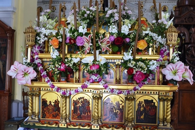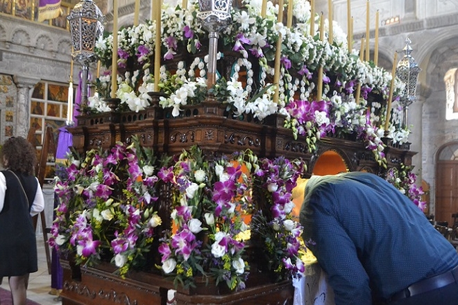 Ολάνθιστοι επιτάφιοι, άλλοι λιτοί και άλλοι πιο επιβλητικοί, κόσμησαν τις εκκλησίες περιμένοντας τους πιστούς το βράδυ της Μεγάλης Παρασκευής για την καθιερωμένη λειτουργία, και τον κατανυκτικό ύμνο “Ω γλυκύ μου έαρ”.