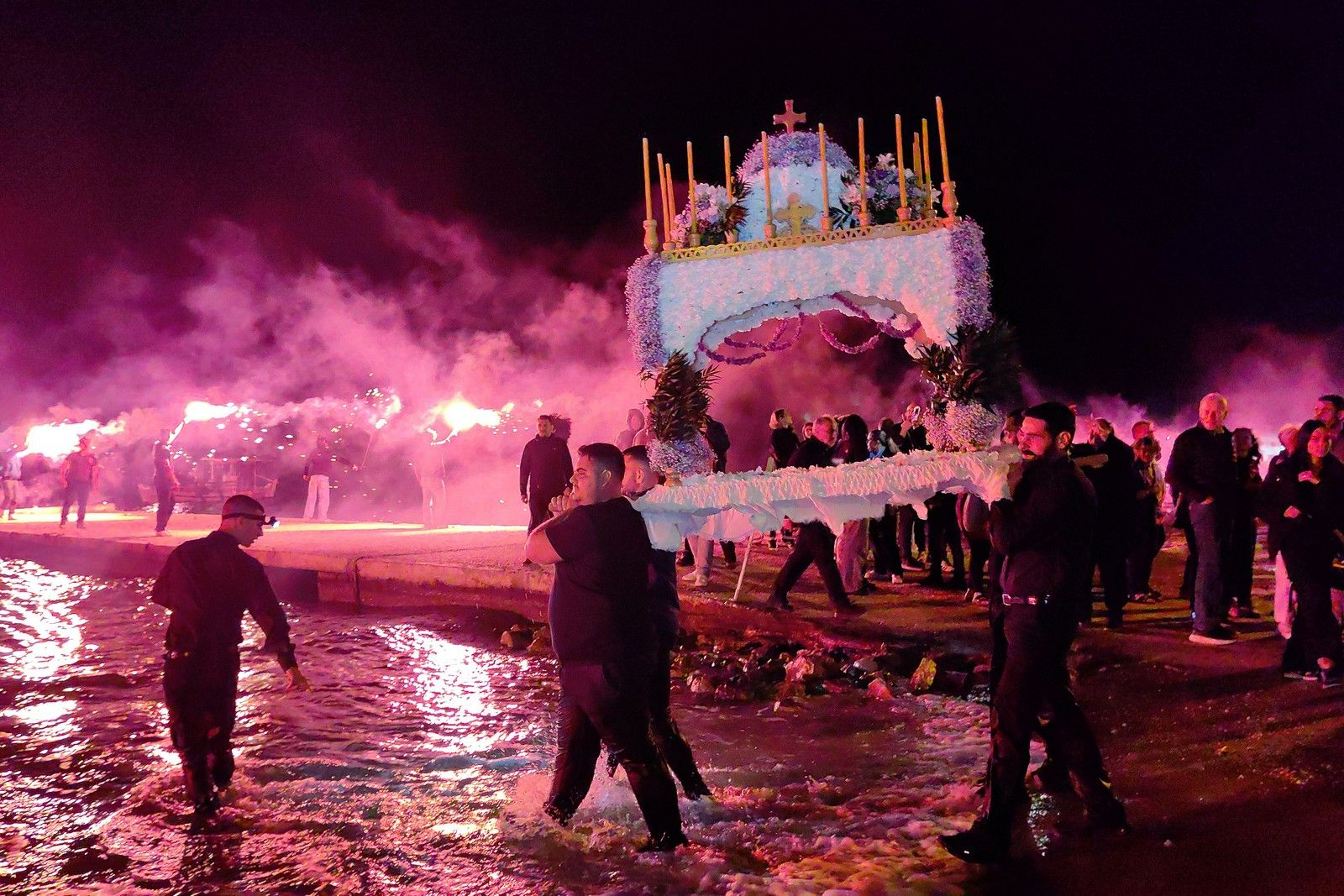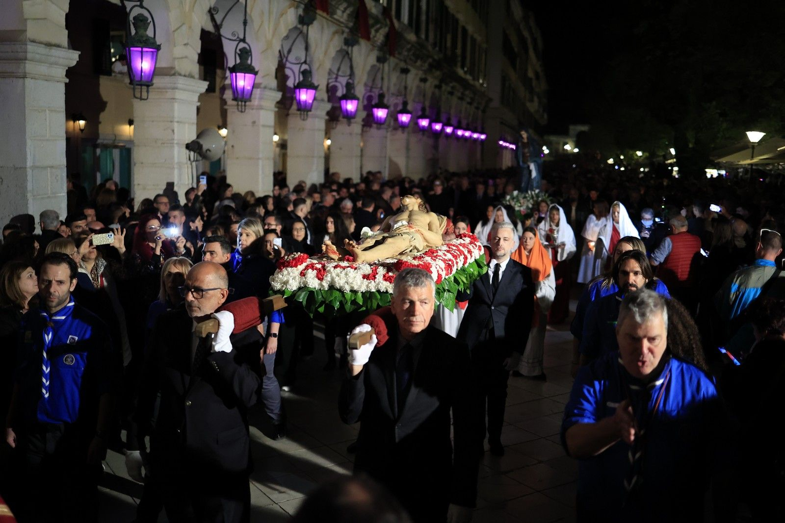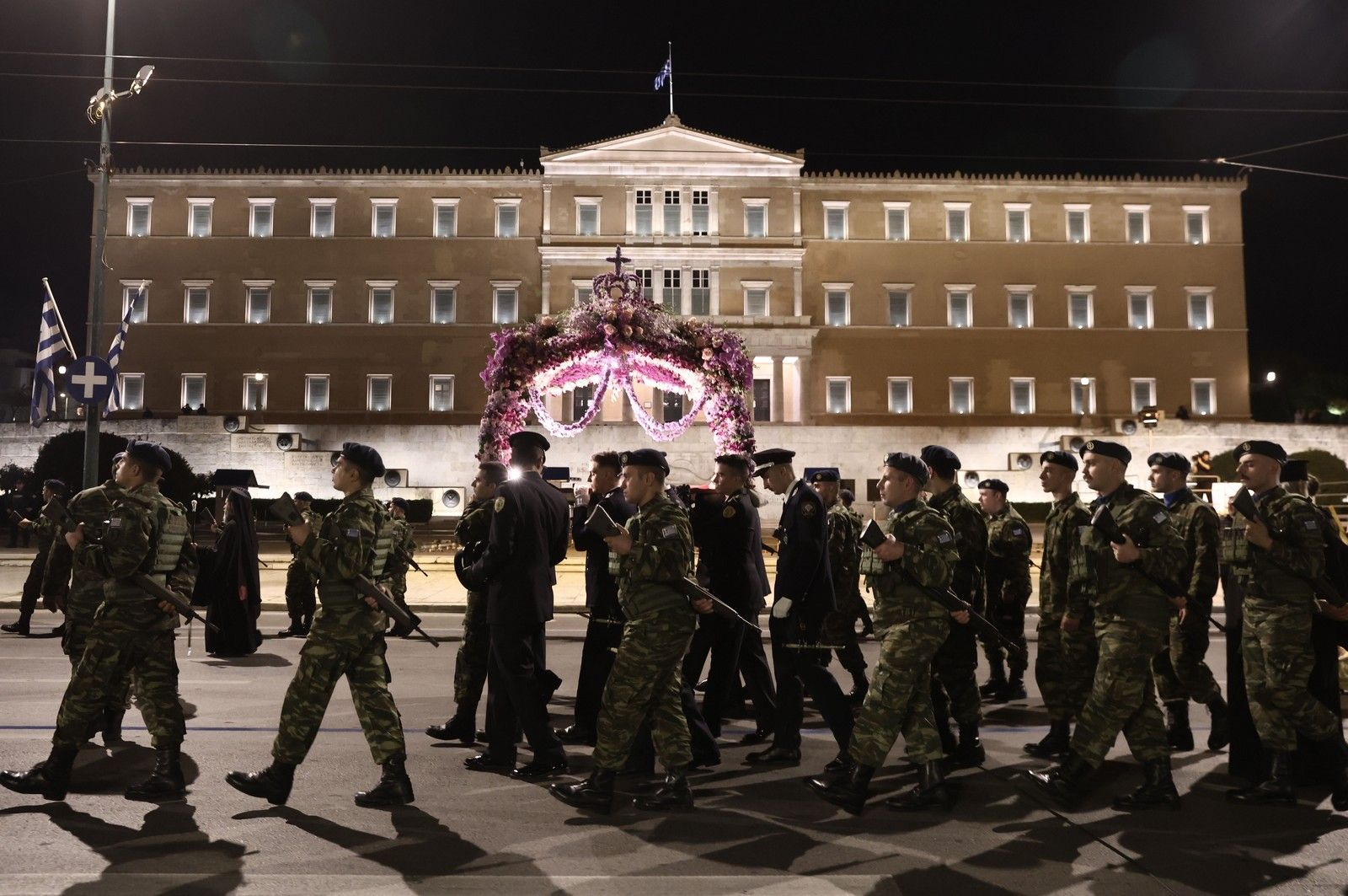 Στη συνέχεια, οι πιστοί σχημάτισαν μια μεγάλη πομπή για την περιφορά του Επιταφίου στους δρόμους του κέντρου της Αθήνας, η οποία έφτασε μέχρι την πλατεία Συντάγματος, έξω από τη Βουλή, που είχε γεμίσει με μικρούς και μεγάλους.