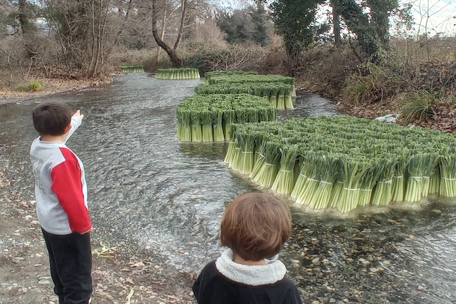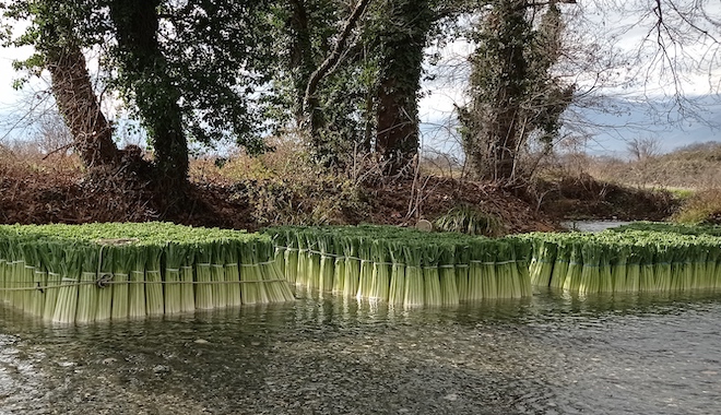 Βλέποντας κάποιος ξαφνικά τα εκατοντάδες δεμάτια με πράσα στον ποταμό «Κρύο Νερό» της Δωροθέας Αλμωπίας θα μιλούσε για θαύμα της φύσης. Κάποιος άλλος, ίσως, να ξεγελιόταν ότι πρόκειται για… μπαμπού που ριζώνουν και φυτρώνουν στο νερό, μια εικόνα που παραπέμπει σε μακρινά εξωτικά μέρη.