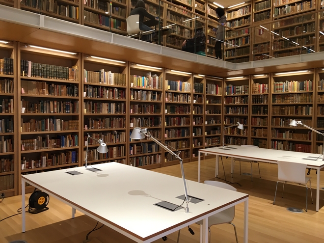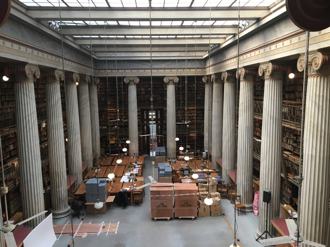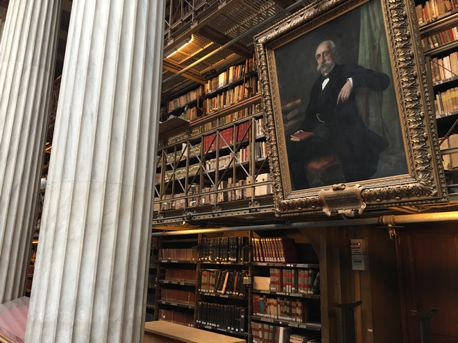 Εκεί όπου ερευνητές, φοιτητές και μελετητές σπεύδουν για δεκαετίες, στο αναγνωστήριο με τα ξύλινα θρανία και τα πράσινα φωτιστικά, που περιβάλλονται από τα επιβλητικά βιβλιοστάσια, πάντα υπό το αυστηρό βλέμμα του πορτραίτου του λόγιου και νομικού του 19ου αιώνα, Μάρκου Ρενιέρη.
