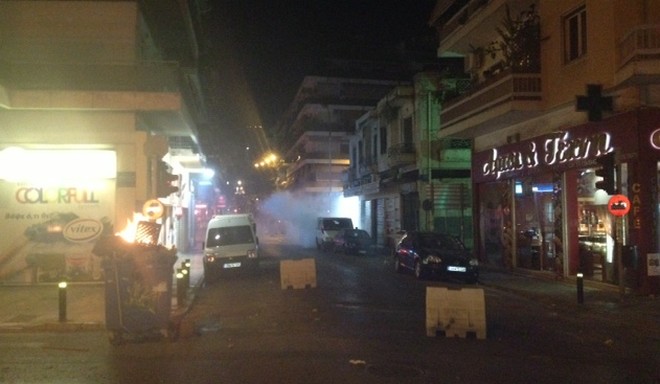 Αντεξουσιαστές έβαλαν φωτιές σε κάδους, την ώρα που τα ΜΑΤ, προσπαθούσαν να τους απωθήσουν προς την Αλεξάνδρας.