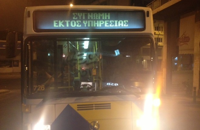 Διαδηλωτές σταμάτησαν λεωφορείο και έγραψαν συνθήματα