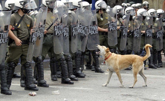 Και ένας σκύλος στο πλευρό των διαδηλωτών. (Φωτογραφία: Pascal Rossignol για το Reuters).