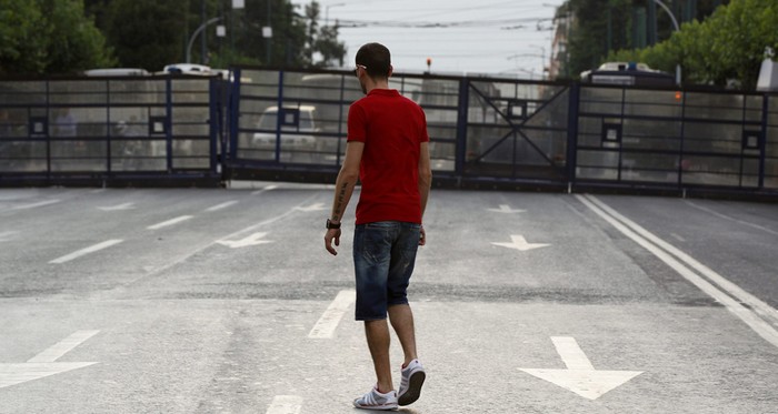 Απέναντι στο σιδηρόφρακτο “τείχος” της Βασ. Σοφίας (Φωτογραφία: Γιάννης Μπεχράκης για το Reuters).