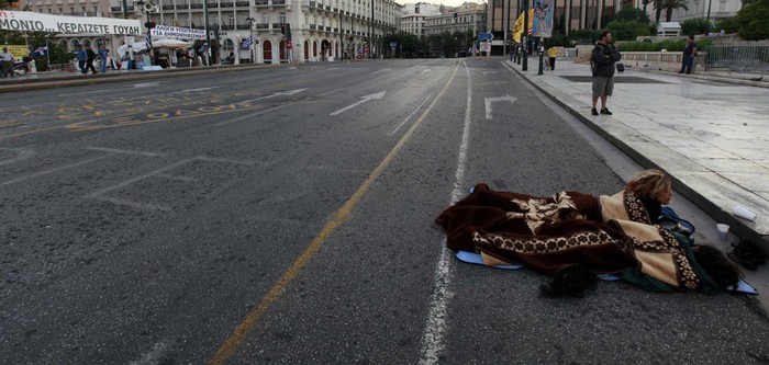 Διαδηλωτές κοιμήθηκαν στην Βασ. Αμαλίας. (Φωτογραφία: Γιάννης Μπεχράκης για το Reuters)